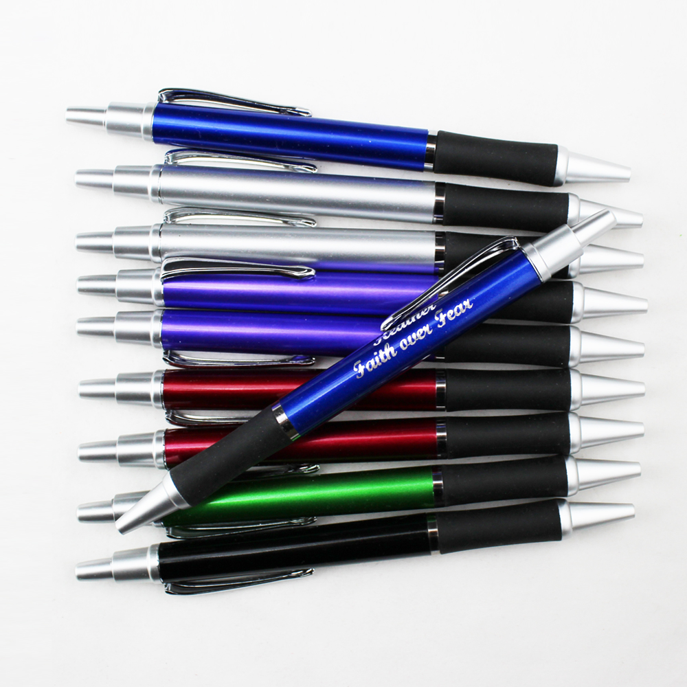 - High quality Plastic Pens – Tip and Click Silver Accents on Solid Color Body with Black Grip, You can select between different pen colors