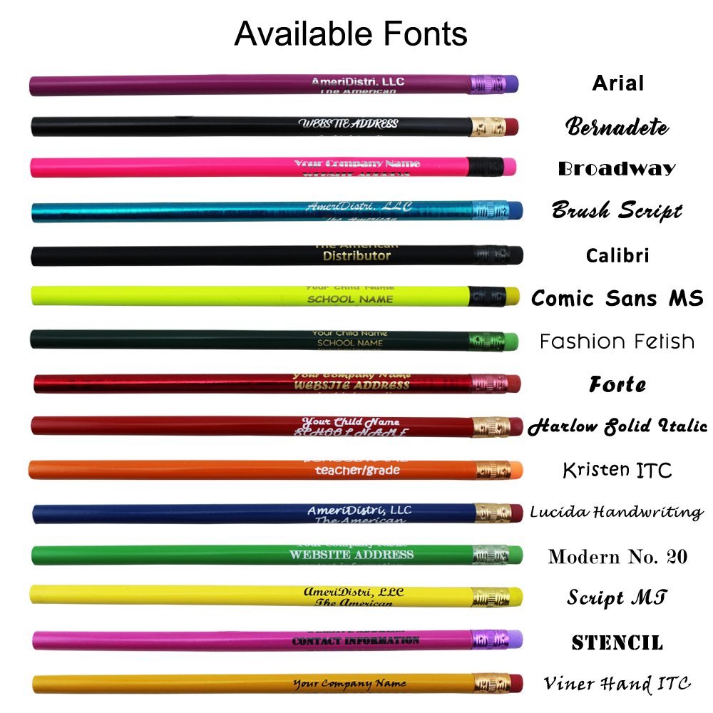 Assorted Colors, Black (Red Eraser, Brass Ferrule), Black Wood, Cyan, Dark Blue, Dark Green, Gold, Light Green, Light Purple, Light Yellow, Matte Black (Black Eraser), Matte Black (White Eraser), Metallic Copper, Metallic Cyan, Metallic Green, Metallic Lavender, Metallic Orange, Metallic Pink, Metallic Purple, Metallic Red, Metallic Sea Blue, Metallic Silver, Metallic Sky Blue, Natural Wood, Neon Assorted, Neon Green, Neon Orange, Neon Pink, Neon Yellow, Orange, Patriotic Flag, Pink, Purple, Rainbow, Red, Sea Blue, Silver, Sky Blue, Subtle Colors, Tricolor Black, Tricolor Blue, Tricolor Green, Tricolor Purple, White, White (Red Eraser), Yellow